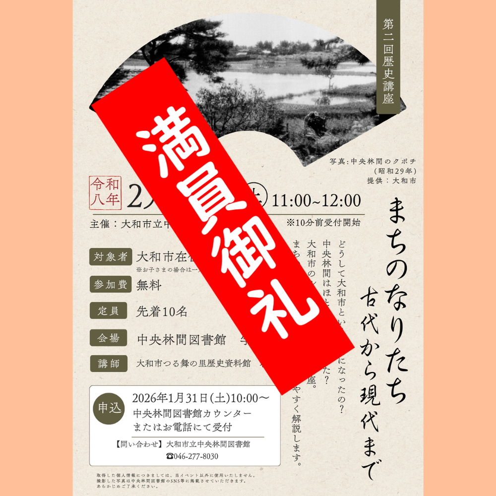 【満員御礼のお知らせ】歴史講座「まちのなりたち 古代から現代まで」